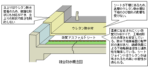- 防水層が下地に密着している為、下地に含まれている水分の影響を受ける、防水層にひび割れが発生したり、膨れが発生する場合がある